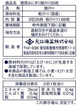 <アレルギー/なし> 国内産の原料を使用したおにぎりに最適サイズの焼のりです。保存に便利なチャック袋入りのボリュームパックです。 ※デザイン切替中のため、商品画像とパッケージが異なる場合がございます。 ご了承ください。 ![]() |